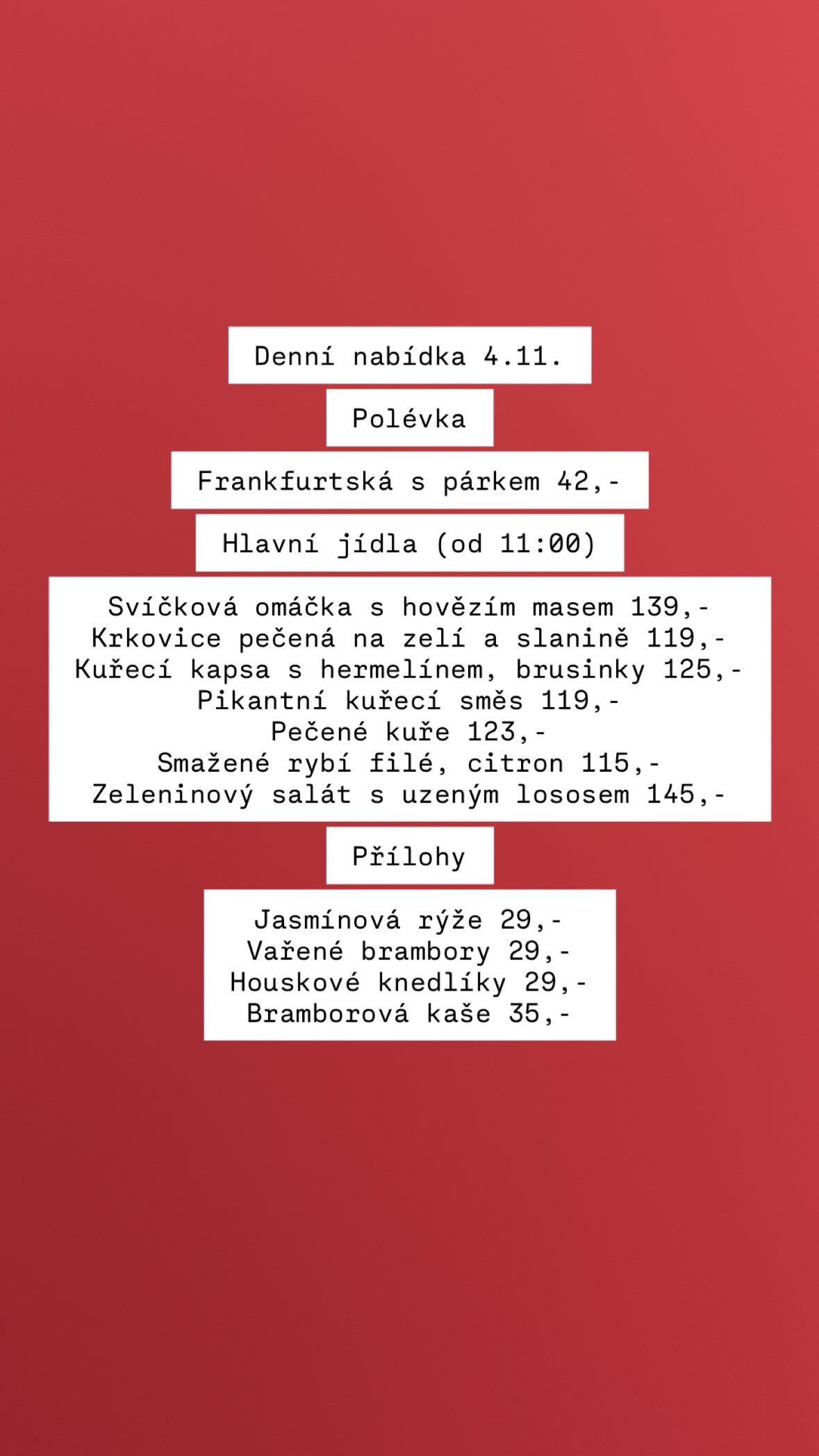 Nabídka není stálá a mění se každý den. :-)